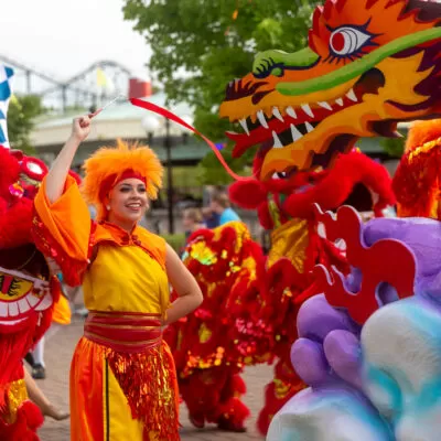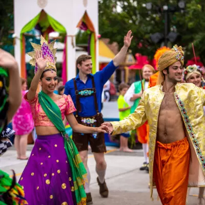 Grand Carnivale, select dates June 24-July 9, 2023—enjoy international music, food, and games, plus lavish floats and street performers at the nighttime Spectacle of Color Parade.