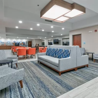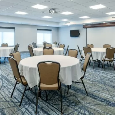 The Holiday Inn Express & Suites has meeting space available for up to 45 people. The largest onsite space is 900 square feet, with 975 total square feet available for meetings. Click for more information or to request a quote.